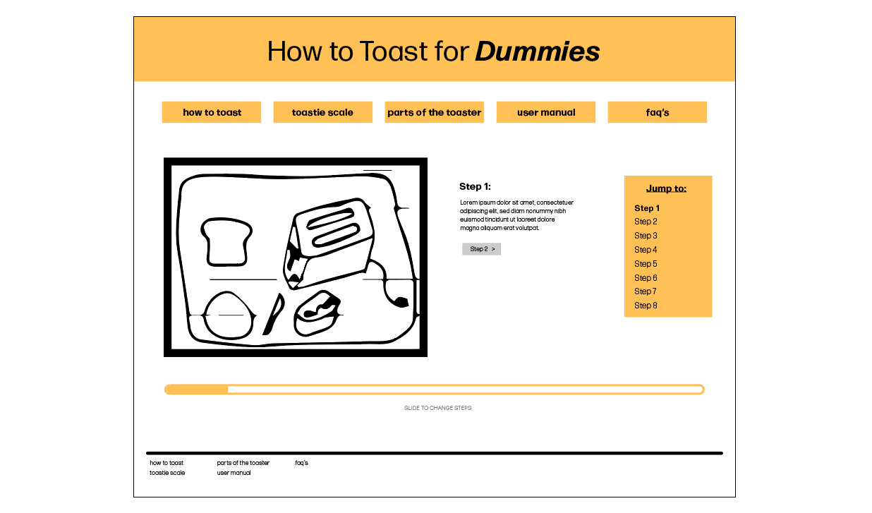 ‘How to Make Toast’ Website Planning Instructional Design, Interaction Design, Studio Work Site Map Wireframe Roughs Wireframes Complete Interface Design User Interface – Interactions Share this: Share on X (Opens in new window) X Share on Facebook (Opens in new window) Facebook Like Loading... Related